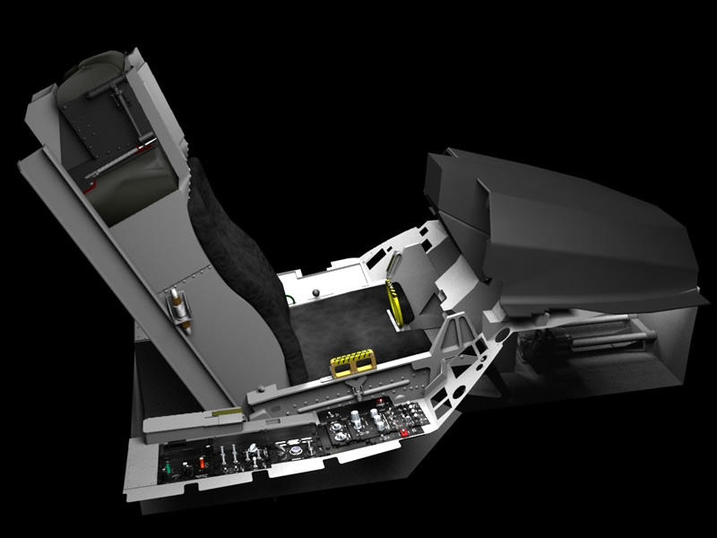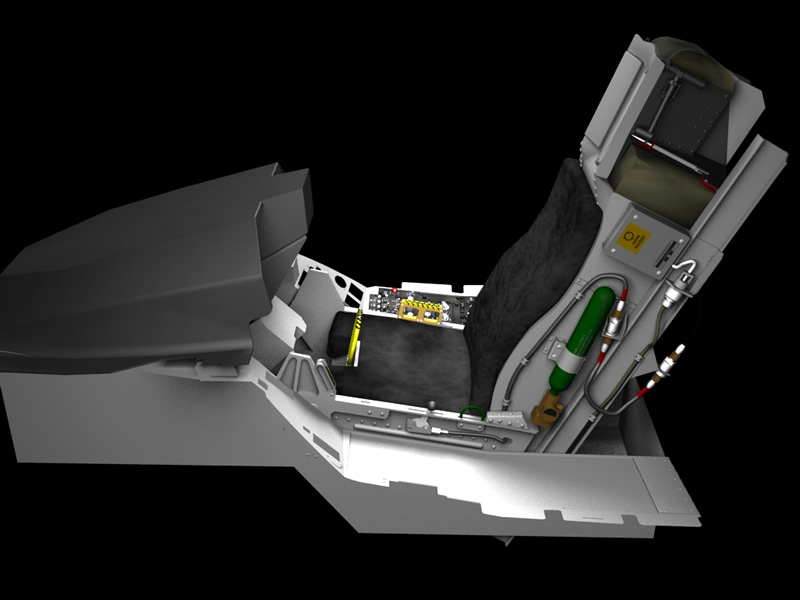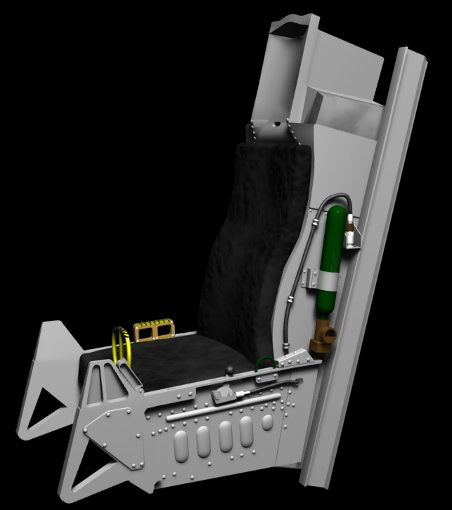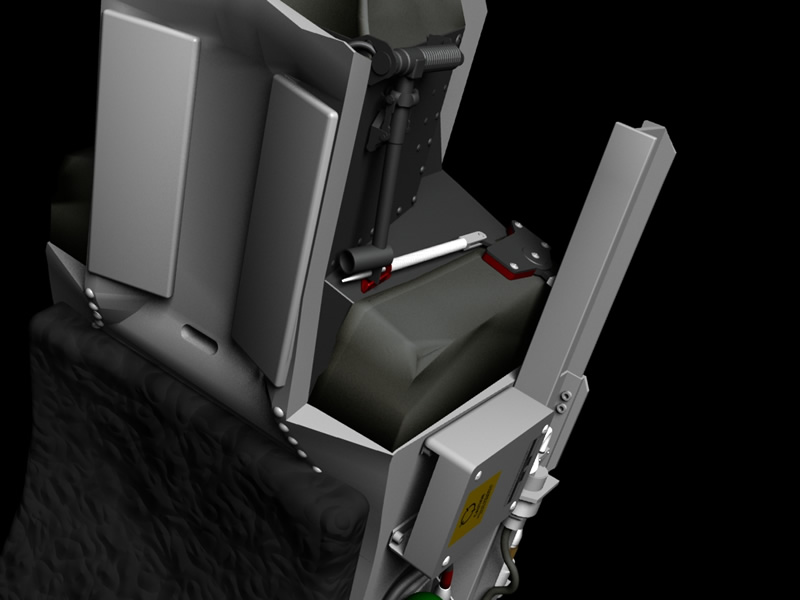 The last two weeks have been spent detailing the ACESII ejection seat, with the majority of the time being spend modeling the deployable pitot tube system on the parachute container. I have also started combining all of the individual components into a scene together which will eventually become the complete 3D model. You can see from the renders below (click for a larger version) that the detailing on the left side of the seat is pretty much finished with all the various pipes and cables etc. I plan to complete the right side of the seat in the coming week as this is a lot simpler than the other side. The most recent addition to the model was the map / data stowage box on the right side of the cockpit.