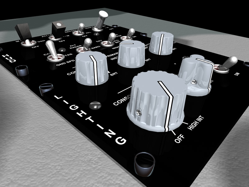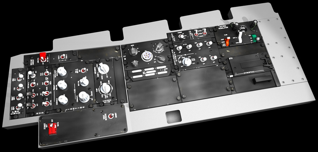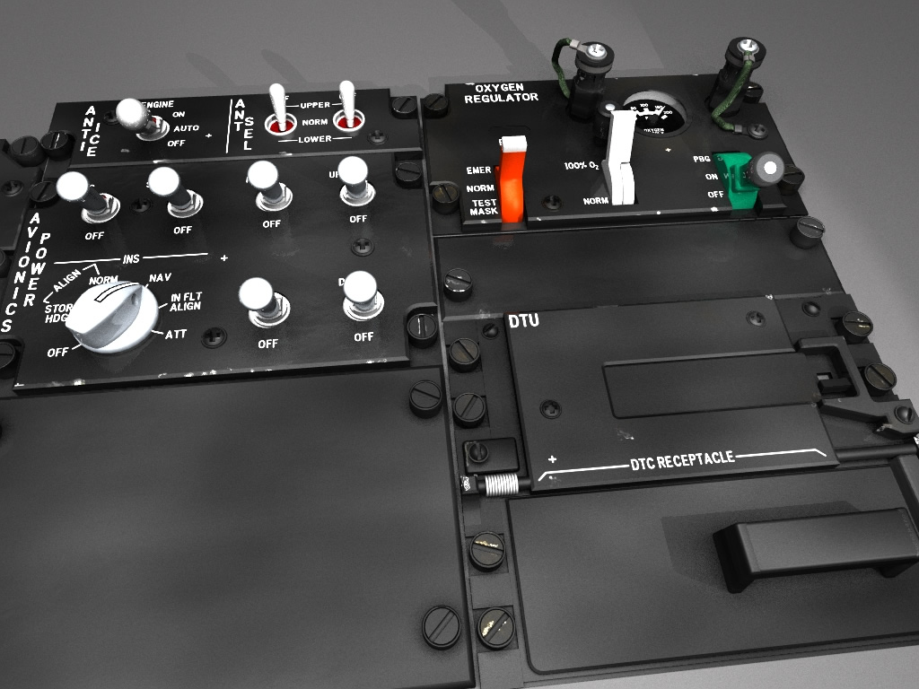 This new cockpit project was fueled by the fact that I've started to learn to use 3D app's in my role at work. Because of my work on the Sp3 cockpit I had a fairly good knowledge of F-16 cockpit panels so what better to practice on. As a few panels started to appear it just seemed a natural progression to continue with the project until it evolves into a complete 3D cockpit model. Over the last few weeks a few bits and pieces have started appearing, I've included a few random renders below. Most of these are test renders of incomplete items, nothing is finished as yet.